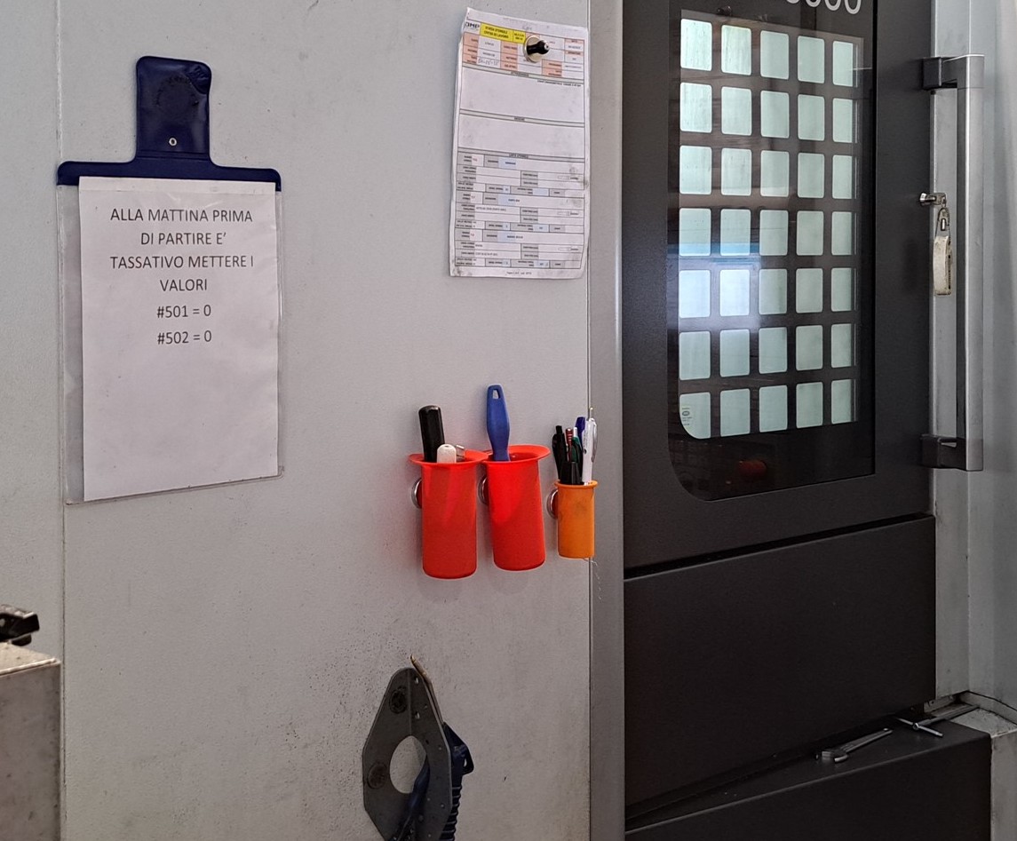 Contenitori in plastica utili per contenere biro, bombolette, borracce e piccole attrezzature su supporti metallici.